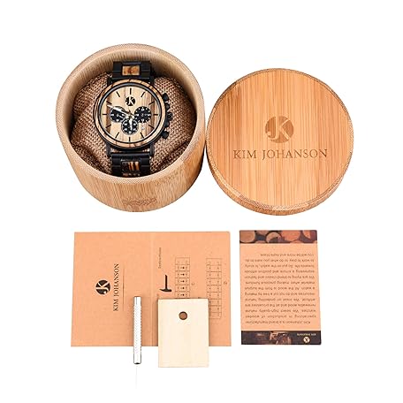 Thương hiệu Kim Johanson là cái tên nổi tiếng được rất nhiều khách hàng trên thế giới chọn lựa. Với kiểu dáng đẹp mắt, sang trọng, sản phẩm Kim Johanson Men's Military* Wooden Stainless Steel Watch in Light Brown Chronograph with Stopwatch and Link Bracelet Handmade Quartz Analogue Watch with Gift Box, brown, Bracelet là sự lựa chọn hoàn hảo nếu bạn đang tìm mua một món cho riêng mình.