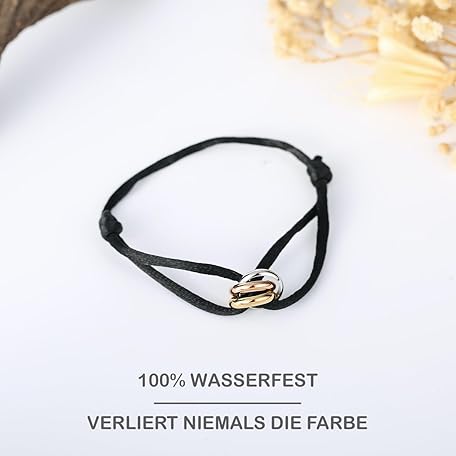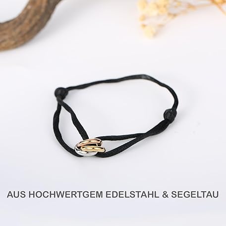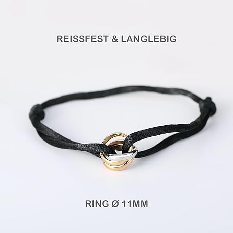 Sản phẩm Kim Johanson Sailing Rope Women's Bracelet Tricolour in Black Cord Bracelet with Stainless Steel Ring in Silver, Gold and Rose Gold Waterproof Boho Jewellery for Women Adjustable Length with đang được bán với giá ưu đãi là $19.0096 tại nước Đức.