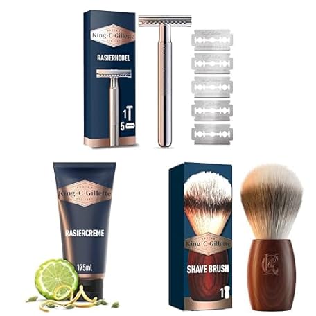 Sản phẩm King C. Gillette Safety Razor + 5 Razor Blades + Original Shaving Cream + Shaving Brush Gift for Men đang được bán với giá ưu đãi là $41.9541 tại nước Đức.