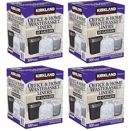 Kirkland Signature 10 litre waste bin clear liner, 4 packs (500 bags)