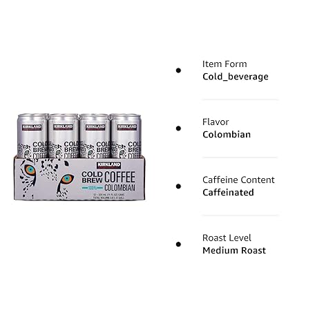 Kirkland Signature Cold Brew Coffee, Colombian, 11 oz, 12 ct