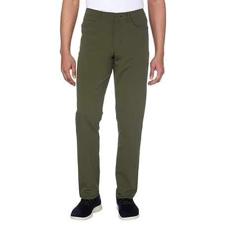 Kirkland Signature Herren 5 Pocket Performance Hose, Komfortbund, 2-Wege-Stretch-Stoff, feuchtigkeitsableitend, grün, 34 W/32 L