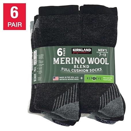 Sản phẩm Kirkland Signature Mens Merino Wool Blend Socks 6 Pairs Black 6-13 UK, black đang được bán với giá ưu đãi là $57.0942 tại nước Đức.