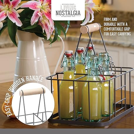 KitchenCraft Living Nostalgia Wire Metal Milk Crate/Bottle Carrier, 29 x 20 x 13 cm - Grey