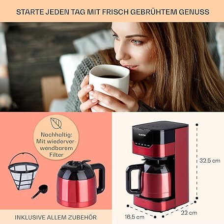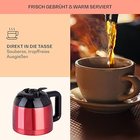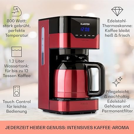 Thông tin sản phẩm Klarstein 1,2 L Kaffeemaschine mit Thermoskanne und Timer, Kaffeemaschine Filtermaschine für 10 Tassen, 800 W Filter Kaffeemaschine Groß, Filterkaffeemaschine mit Edelstahl-Thermoskanne für Kaffee