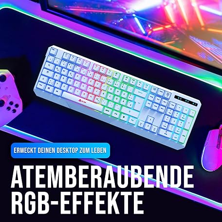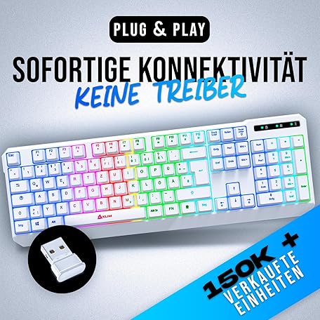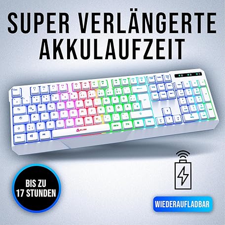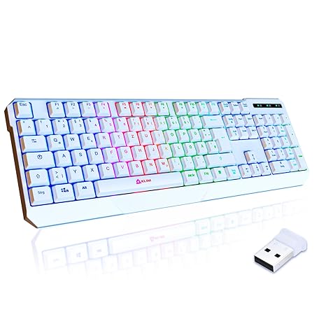 Thông tin sản phẩm KLIM Chroma Wireless Gaming Keyboard QWERTZ DE - RGB Illuminated, Quiet & Ergonomic, Durable & Waterproof - For PC, Mac, PS4, PS5 - White