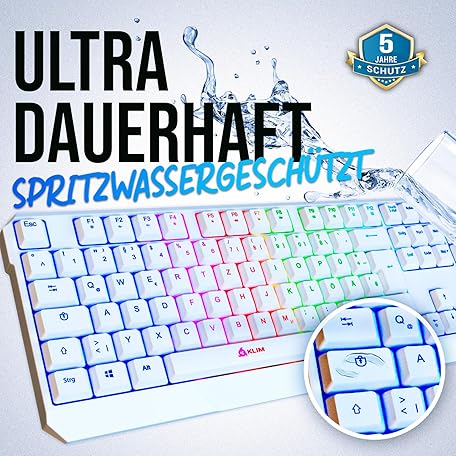 Sản phẩm KLIM Chroma Wireless Gaming Keyboard QWERTZ DE - RGB Illuminated, Quiet & Ergonomic, Durable & Waterproof - For PC, Mac, PS4, PS5 - White đang được bán với giá ưu đãi là $50.7613 tại nước Đức.
