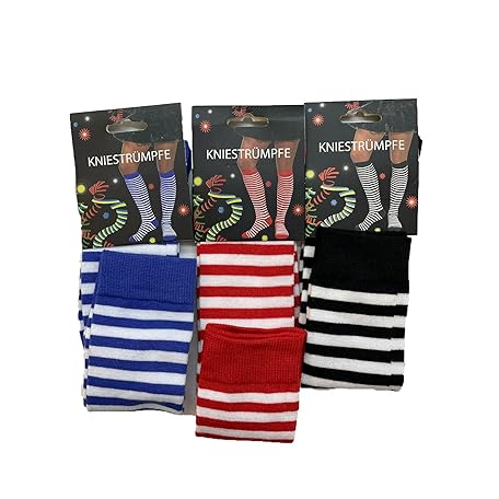 Knee Socks Carnival Costume Red White Cologne Striped Stockings Red Blue Black