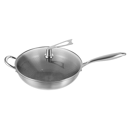 KOCKSHION Edelstahl Wok Mit Deckel Und Honigwabenstruktur Antihaft-pfanne Für Induktionsherde Gasherde Und Elektroherde Langlebig Und Leicht Zu Reinigen Für Asiatische Küche