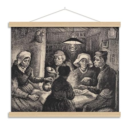 Kocreat Kocreat Post-Impressionism The Potato Eaters Wall Art Van Gogh Sketch Oil Painting Poster Giclee Canvas Prints with Wooden Scroll Home Decor 50x38cm