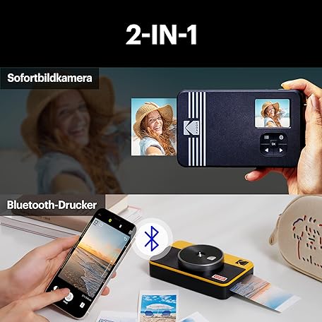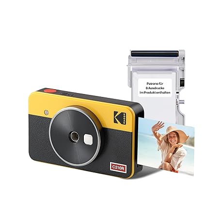 KODAK Mini Shot 2 Retro 4PASS 2-in-1 Instant Camera and Photo Printer (5.3 x 8.6 cm) + 8 Sheets, Yellow