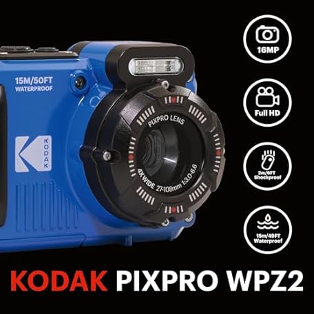 Thông tin sản phẩm KODAK Pixpro WPZ2 Digital Camera Compact 16 m Pixel, Waterproof up to 15 m, Shockproof, Video 720p, LCD Screen 2.7 - Li-ion Battery, Blue