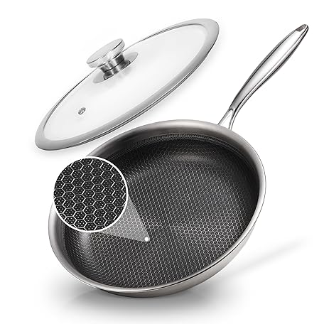 KOKHUB Stainless Steel Frying Pan with Lid, 28 cm Non-Stick Honeycomb Pan, Non-Toxic Cookware for Induction, Electric and Gas Hobs, Dishwasher and Oven Safe, PFOA Free
