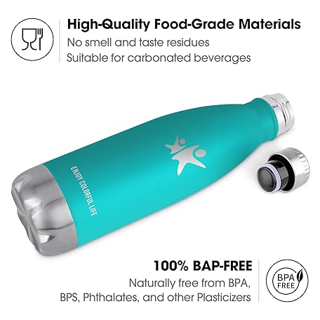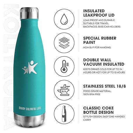 • KollyKolla Thermosflasche, Trinkflasche Edelstahl 500ml/750ml/1L, Auslaufsicher Thermoskanne, BPA-Frei Isolierflasche, Wasserflasche für Kinder, Sprudel, Sport, Schule, Fitness, Outdoor, Camping