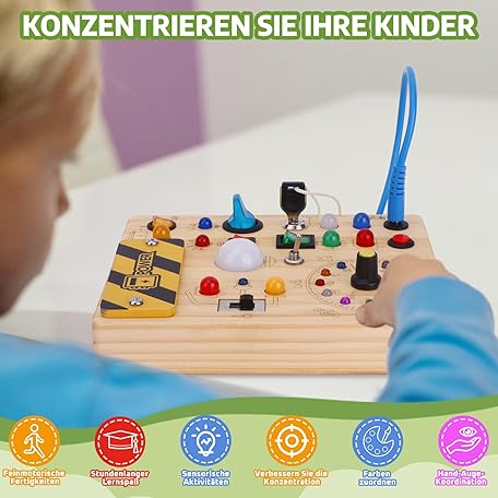 Sản phẩm Konijiwa Montessori Spielzeug ab 1 Jahr Busy Board Activity Board Spielzeug ab 2 Jahre Holzspielzeug mit 10 Schalter 23 LED-Leuchten Spielzeug Sensory Learning Toys für 1 2 3 Jahre Jungen und Mädchen đang được bán với giá ưu đãi là $23.5004 tại nước Đức.