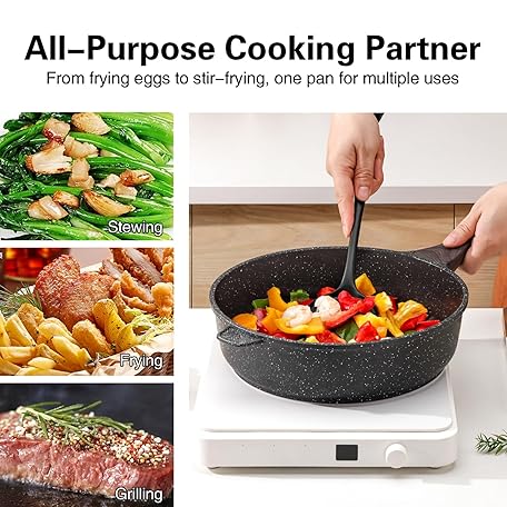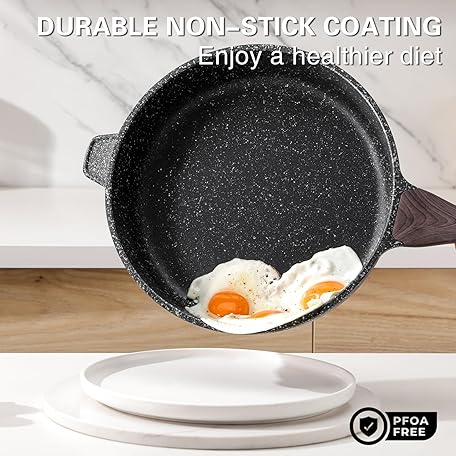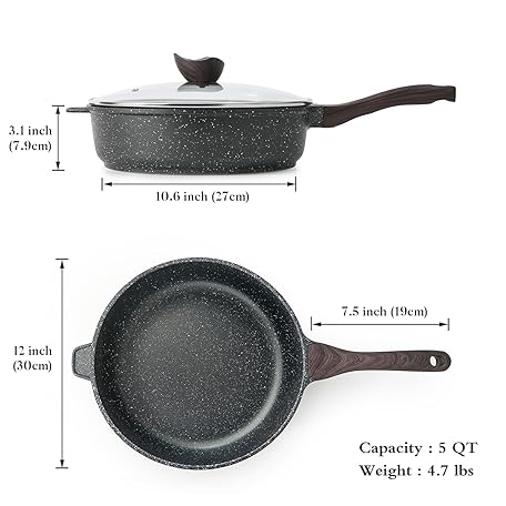 Thông tin sản phẩm Kordisen Non-Stick Deep Frying Pan with Lid, 30 cm Large Granite Coating Pan, Induction Compatible, Healthy Stone Cookware, PFOA-Free