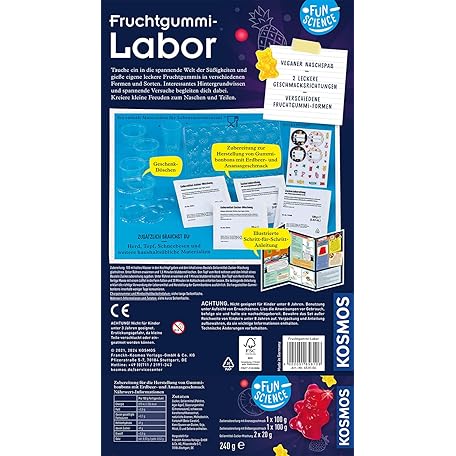 Thông tin sản phẩm KOSMOS 658106 Fun Science – Fruit Gum Laboratory, Make Vegan Sweets, Various Flavours and Shapes, Make Your Own Gum Sweets, Experiment Set for Children from 8 to 12 Years