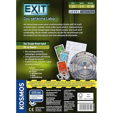 Thông tin sản phẩm Kosmos 692742 - Exit - The Game - The Secret Laboratory, Kennerspiel des Jahres 2017, Level: Advanced, Escape Room Game