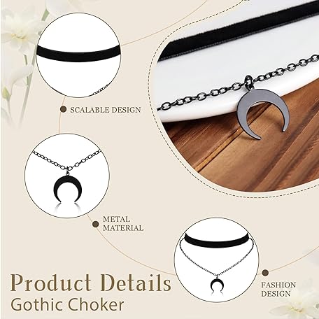 Thông tin sản phẩm Kotkiddy Gothic Choker Necklace for Women, Black Velvet Necklace, Layer Necklace, Goth Jewelry for Women, Velvet, zinc alloy