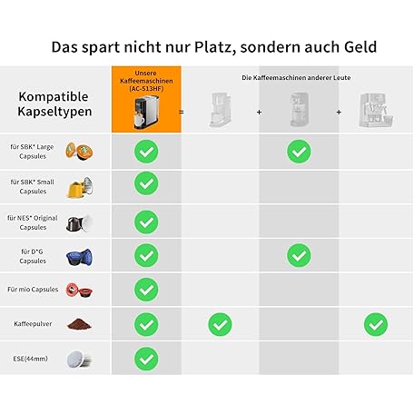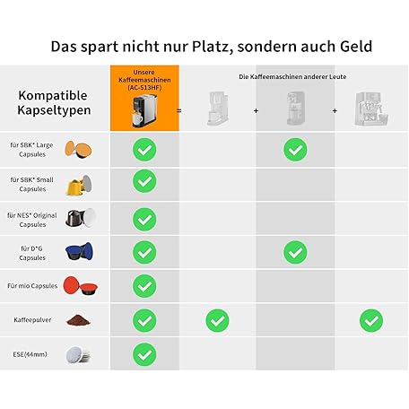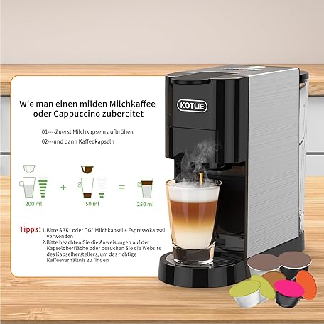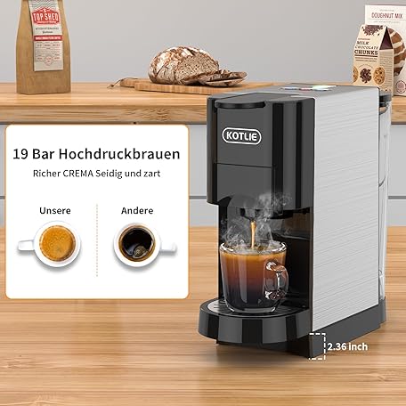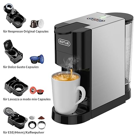 Sản phẩm KOTLIE AC-513HF 5-in-1 Coffee Machine for NES/DG/a modo mio/Ground Coffee/ESE (44 mm), Height for Large Cups (Black) đang được bán với giá ưu đãi là $139.2039 tại nước Đức.