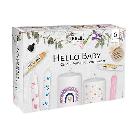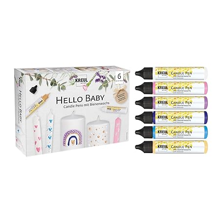 Thông tin sản phẩm KREUL 49758 Candle Pen Set of 6 Hello Baby, 6 x 29 ml, Fine Painting Tip, Colours with Beeswax for Decorating and Painting Candles