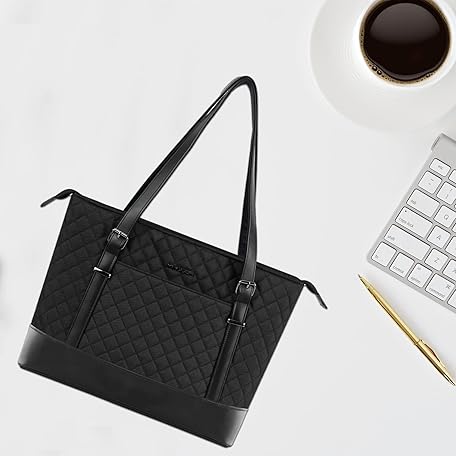 Thông tin sản phẩm KROSER Laptop Women's Handbag Shopper 15.6 Inch Stylish Shoulder Bag Water-Repellent Large Travel Shopping Bag with RFID Pockets for Work/Business/College/Women, Black (black quilted), Elegant