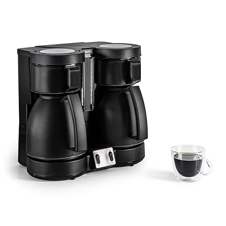 Thương hiệu KRUPS là cái tên nổi tiếng được rất nhiều khách hàng trên thế giới chọn lựa. Với kiểu dáng đẹp mắt, sang trọng, sản phẩm KRUPS Duothek Thermo Filterkaffeemaschine, zwei separate Isolierkannen und Brühvorgänge, sehr gute Isolierleistung, Ein-und-Aus-Schalter mit Kontrolleuchten, 2 x 8 Tassen, Schwarz, KT8501 là sự lựa chọn hoàn hảo nếu bạn đang tìm mua một món cho riêng mình.