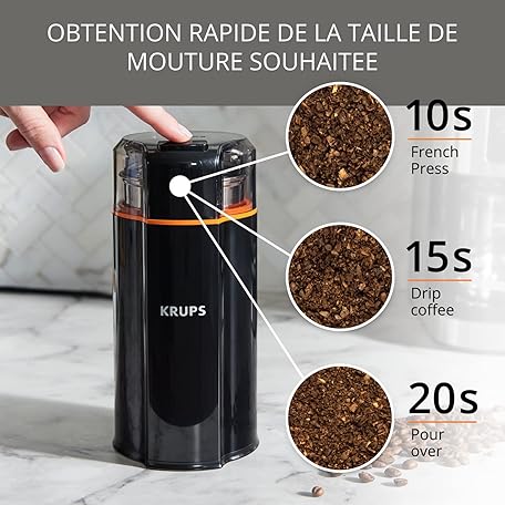Thông tin sản phẩm Krups GX3328 Silent Vortex Electric Coffee and Spice Mill | 3-in-1 Grinder for Coffee Beans, Spices, Herbs | Super Quiet | Dishwasher Safe | Removable Grinding Bowl + Lid | Black
