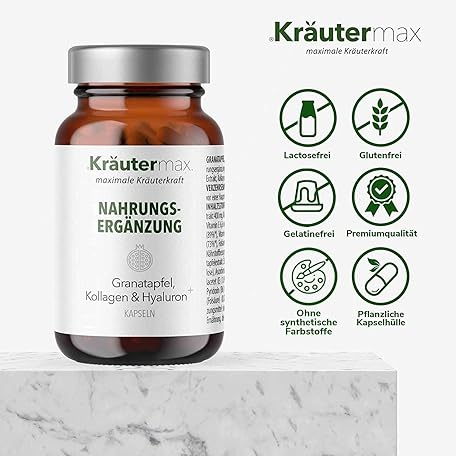 Thông tin sản phẩm Kräutermax Pomegranate Capsules | Capsules High Dose with Collagen, Hyaluronic Acid, Vitamin A, Vitamin B | Premium Quality According to Kräutermax Style | Pomegranate Extract | 1 x 60 Pieces