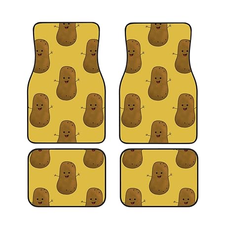 KWQDOZF Happy Potato 4 Piece Car Floor Mats Set Car Mats Full Sets Universal Fit for SUV, Vans, Sedans, Trucks, All Weather Protection Car Floor Mat