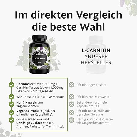 Sản phẩm L-Carnitine 120 Capsules - L-Carnitine Tartrate in Premium Quality - High Dose - Vegan & No Additives - Developed and Laboratory Tested in Germany đang được bán với giá ưu đãi là $21.5711 tại nước Đức.