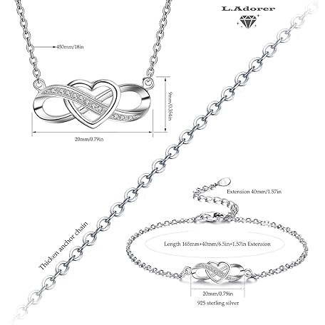 Thông tin sản phẩm LYL.Adorer Schmuckset Silber 925 Damen,Halskette Armband Unendlichkeit Herz,Geschenke für Frauen