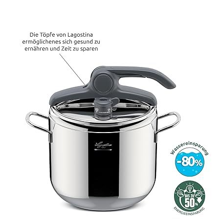 Sản phẩm Lagostina Irradial Control Lagoeasy'UP 7 Litre Pressure Cooker Made of 18/10 Stainless Steel, Diameter 22 cm, Pressure Cooker for Induction and Gas, Easy Opening of the Lid, with 3-Layer Irradial Plus đang được bán với giá ưu đãi là $125.6334 tại nước Đức.