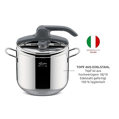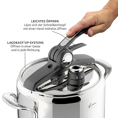 Thông tin sản phẩm Lagostina Irradial Control Lagoeasy'UP 7 Litre Pressure Cooker Made of 18/10 Stainless Steel, Diameter 22 cm, Pressure Cooker for Induction and Gas, Easy Opening of the Lid, with 3-Layer Irradial Plus