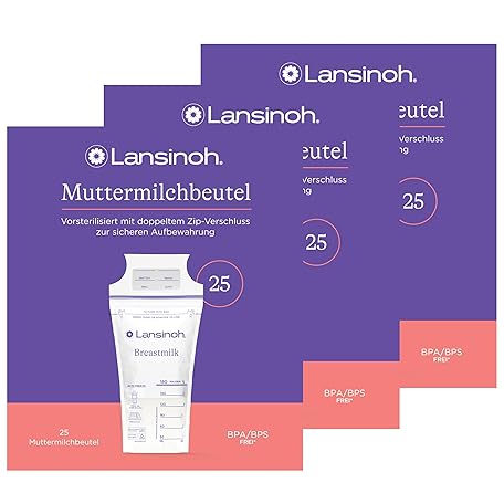Sản phẩm Lansinoh Breast Milk Bags - Pack of 75 - for Safe Storage and Freezing of Breast Milk - Hygienic and Space-Saving đang được bán với giá ưu đãi là $23.9691 tại nước Đức.