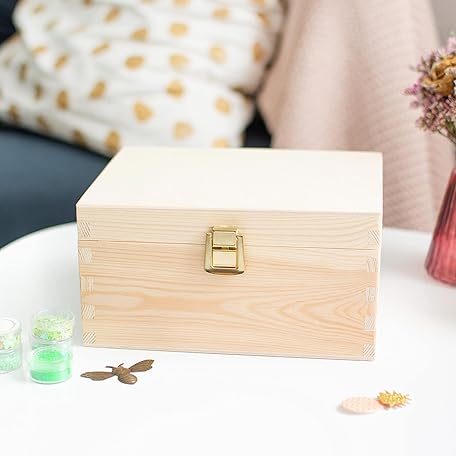 Thông tin sản phẩm LAUBLUST Small Wooden Box with Lid and Lock – Approx. 20 x 15 x 10 cm, Natural – Storage Box, FSC® – Craft & Gift Box
