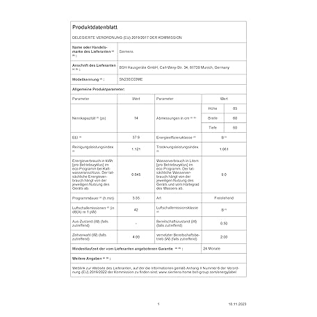 Sản phẩm Lave-vaisselle pose libre SIEMENS SN23EC03ME IQ300 - 14 envelopes - moteur induction - length 60 cm - 42 dB - black đang được bán với giá ưu đãi là $835.8229 tại nước Đức.