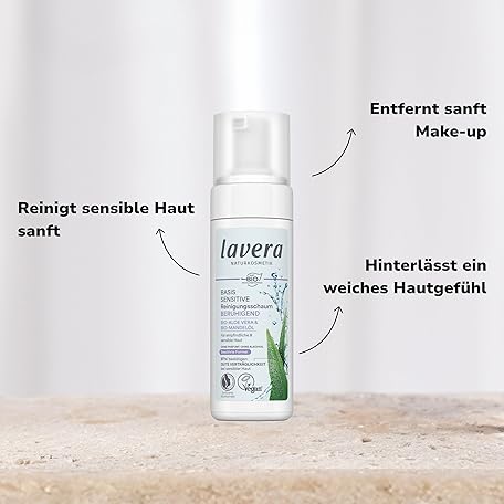 Thông tin sản phẩm lavera Basis Sensitiv Cleansing Foam, Natural Cosmetics, Vegan, Organic Aloe Vera and Organic Almond Oil, Facial Cleansing, Natural Cleansing Formula, 1 x 150 ml