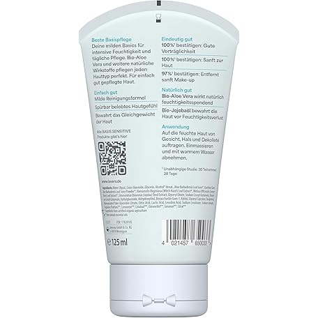 Thông tin sản phẩm lavera Basis Sensitiv Wash Gel Organic Aloe Vera & Jojoba ∙ Invigorates & Refreshes ∙ Vegan Organic Plant Active Ingredients Natural Cosmetics Natural & Innovative Face Cleansing, 125 ml (Pack of 1)