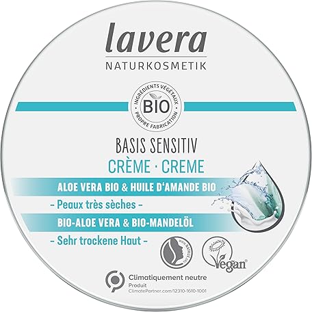 lavera Basis Sensitive Cream - Natural Cosmetics - Vegan - Organic Aloe Vera & Organic Almond Oil - Certified - 150 ml