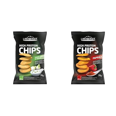 Sản phẩm Layenberger High Protein Chips Sour Cream & Onion (1 x 75 g) & High Protein Chips Paprika, Rich 43.1% Protein and Only 21.2% Carbohydrates with Only 2.3 g Sugar, Not Fried, (1 x 75 g) đang được bán với giá ưu đãi là $7.63 tại nước Đức.
