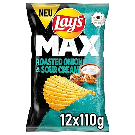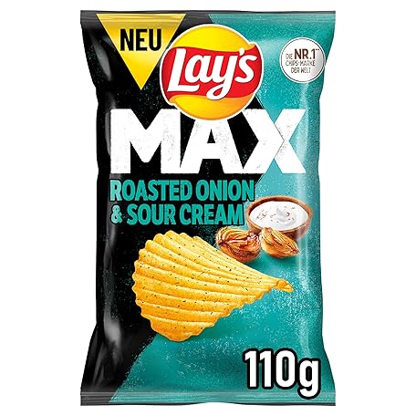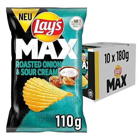 Sản phẩm Lay's Max Roasted Onion & Sour Cream Flavour - Crispy Potato Chips for a Successful Party (12 x 110g) đang được bán với giá ưu đãi là $30.2911 tại nước Đức.