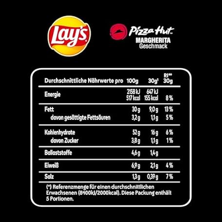 Thương hiệu Lay's là cái tên nổi tiếng được rất nhiều khách hàng trên thế giới chọn lựa. Với kiểu dáng đẹp mắt, sang trọng, sản phẩm Lays Pizza Hut Margherita – Knusprig gesalzene Kartoffelchips für eine gelungene Party, 1 x 150 g là sự lựa chọn hoàn hảo nếu bạn đang tìm mua một món cho riêng mình.