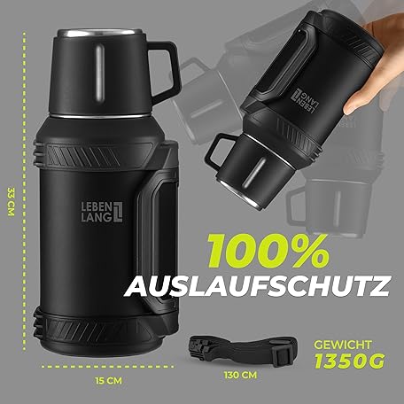 Sản phẩm LEBENLANG Thermos Flask 2.5 Litres - 48 Hours Hot Including Cup, Tea Strainer, Carrying Strap, Water Bottle, Thermal Mug, 2 5 Litre Thermos Flask, Stainless Steel Thermal Flask, Insulated Flask đang được bán với giá ưu đãi là $50.6523 tại nước Đức.