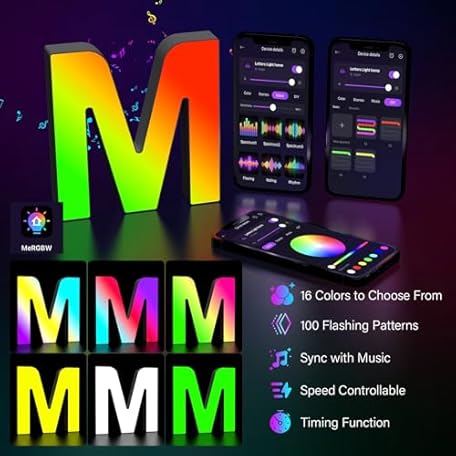 Thông tin sản phẩm LED Letter Lights Alphabet, LED Light Letter, Colour Changeable with USB Power Supply, App Control, Dimmable, Decoration for Birthday, Christmas, Wedding, Party, Mother's Day - Letters M