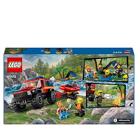 Thông tin sản phẩm LEGO 60412 City Fire Terrain Vehicle with Lifeboat, Off-Road Car Toy for Children from 5 Years, Ambulance with Inflatable Boat, Trailer, Tent and 3 Mini Figures, Gift for Boys and Girls