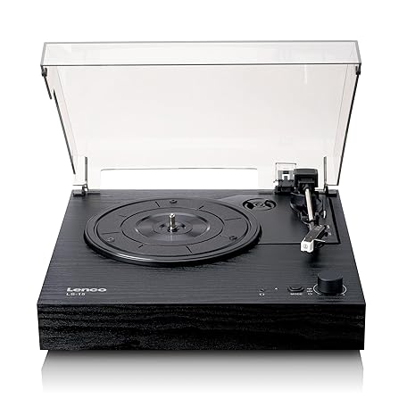 Lenco LS-15BK Turntable - Bluetooth® Reception & Transmission, 2 Integrated Speakers, AT3600L Pickup, Belt Drive, Auto Stop, 33/45 RPM, AUX & RCA - Black