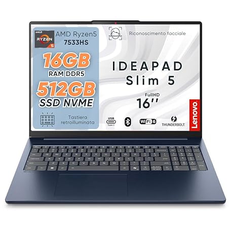 Sản phẩm Lenovo Ideapad Slim5 Cosmic Blue Laptop Notebook Amd Ryzen5 7533HS DDR5 16GB SSD 512GB Display 16" WUXGA IPS FHD+ Laptop Wi-Fi 6 USB Thunderbolt Backlit Keyboard đang được bán với giá ưu đãi là $1003.0943 tại nước Đức.