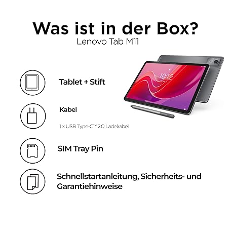 Sản phẩm Lenovo Tab M11 Tablet | 11 Inch WUXGA Touch Display | MediaTek G88 | 4GB RAM | 128GB eMMC 5.1 | Android 14 | Grey | Includes Pen đang được bán với giá ưu đãi là $162.5299 tại nước Đức.