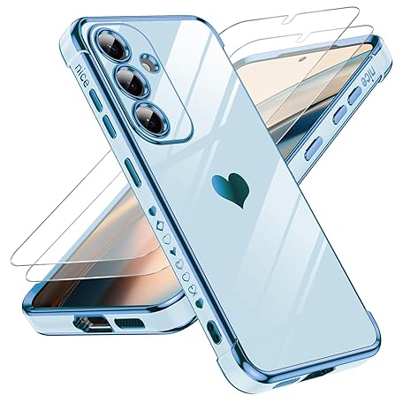 LeYi Mobile Phone Case for Samsung Galaxy S25 Case with 2 x Screen Protectors, Cute Heart Pattern TPU Silicone Electroplating Shockproof Protective Cover Case, Camera Protection, Scratch-Resistant for